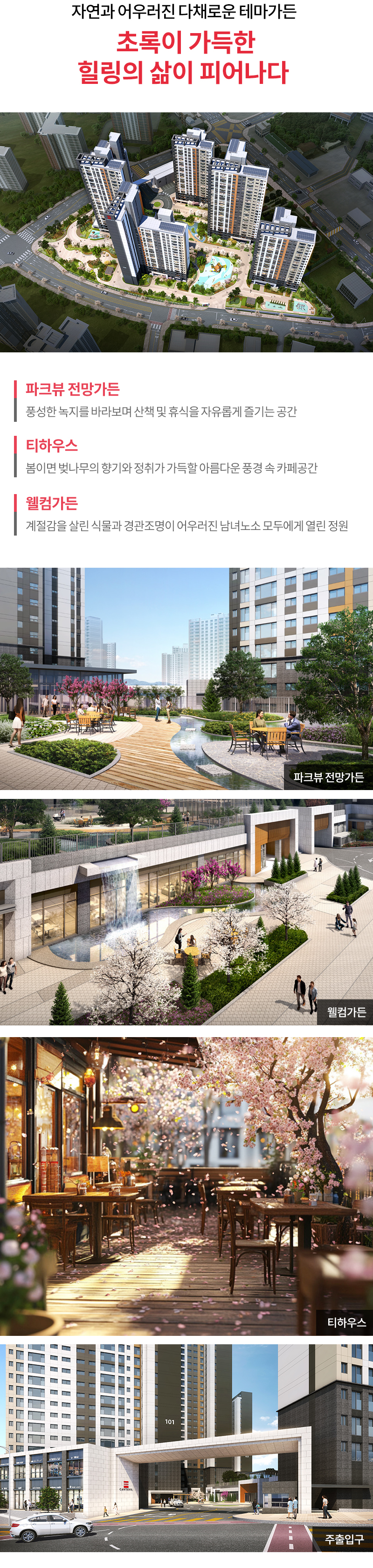 ※ 상기 조감도, 투시도, CG, 이미지 컷은 소비자의 이해를 돕기 위하여 제작된 것으로 실제와 상이할 수 있으며, 건물의 명칭, 동 표시색, 채 및 외부 상세 등은 인허가, 색채심의(또는 디자인 심의) 및 법규의 변경 등으로 인하여 실제 시공 시 변경될 수 있습니다.